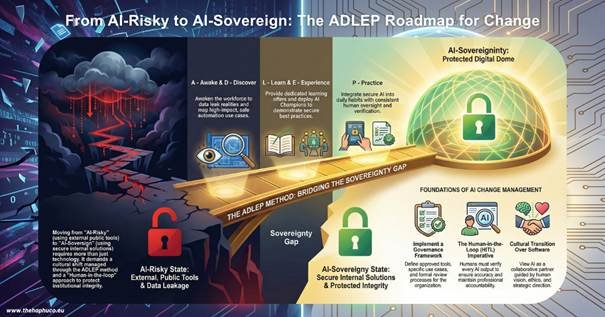 While frameworks like ADKAR focus on the individual, my ADLEP method serves as the institutional roadmap to bridge the “Sovereignty Gap”: